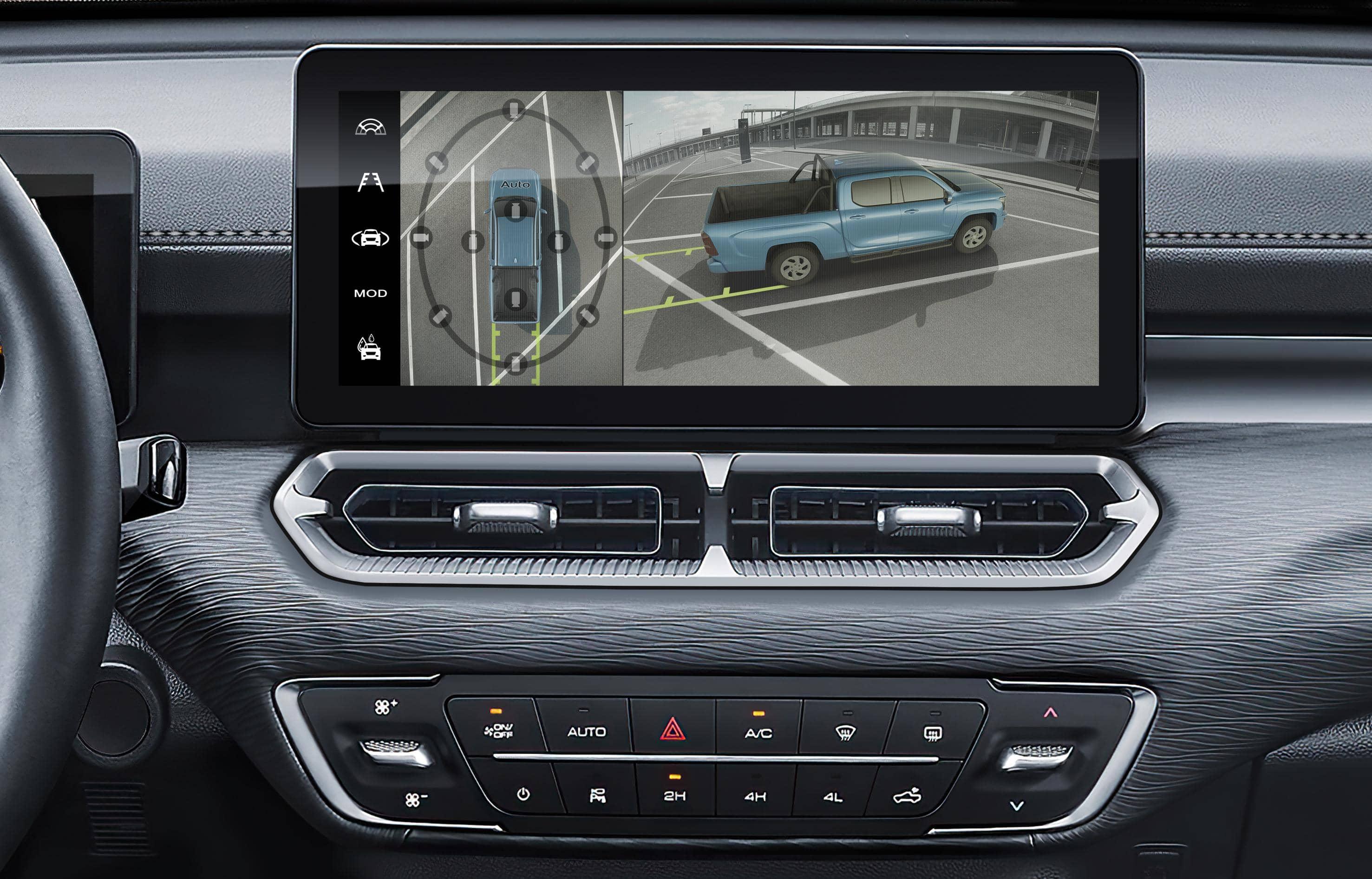 Подключаемый полный привод с понижающей передачей и блокировкой заднего дифференциала придает уверенность при преодолении сложных участков. Дорожный просвет составляет 200 мм, угол въезда и съезда – 25 и 20 градусов соответственно. Спереди установлена независимая двухрычажная подвеска, наделяющая GWM KINGKONG POER отличной управляемостью. Сзади – выносливый жесткий мост на рессорах. За эффективное замедление даже полностью груженого пикапа отвечают дисковые вентилируемые тормоза на всех колесах.